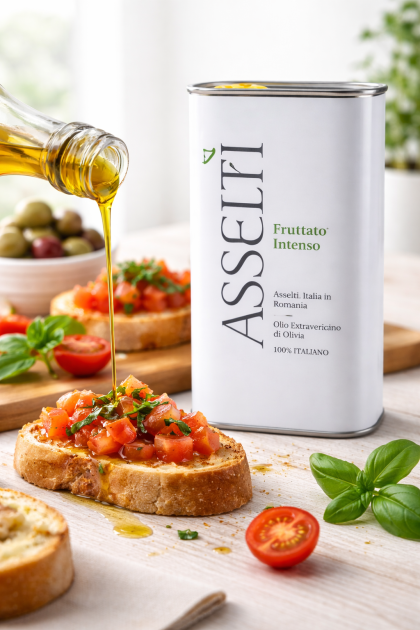 Ulei de masline extravirgin categorie superioara1l, din regiunea Puglia in Italia, din prima presare la rece a maslinelor, Fara pesticide, Gust fructat mediu