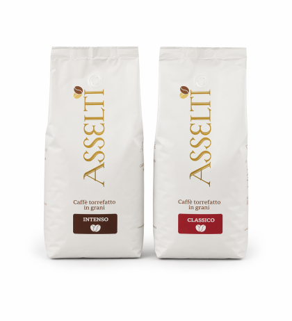 Set ASSELTI® Origine Italia – 2 x Cafea boabe 1 kg (Intenso + Classico), prăjire italiană, gust bogat și aromă intensă