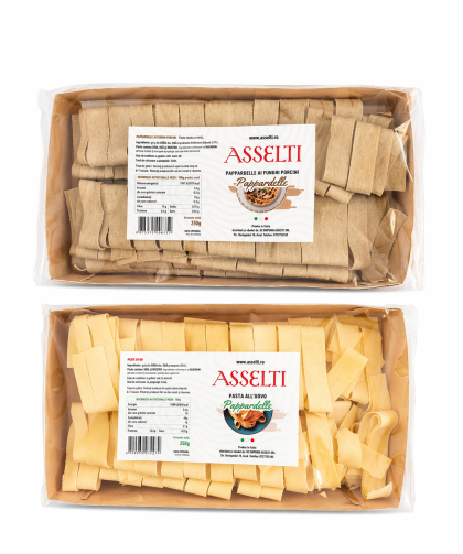 Set ASSELTI® Origine Italia – 2 x Pappardelle 250g (ou + ciuperci porcini), paste artizanale din grâu dur, calitate premium
