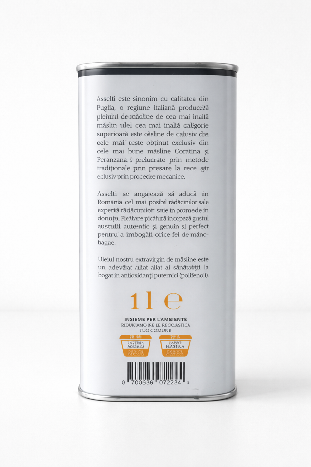 Asselti se angajează să aducă în România cel mai bun ulei posibil, datorită rădăcinilor sale puglieze și experienței profunde în domeniu. Fiecare picătură încorporează gustul autentic și genuin al Pugliei, perfect pentru a îmbogăți orice fel de mâncare.