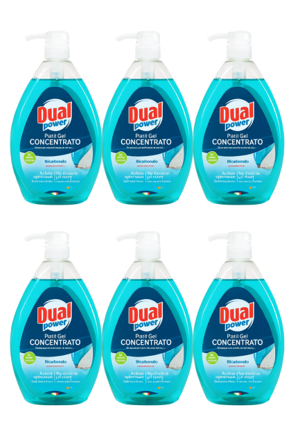 Dual Power Detergent de vase Gel Concentrat cu Bicarbonat – 6 bucăți x 1000 ml