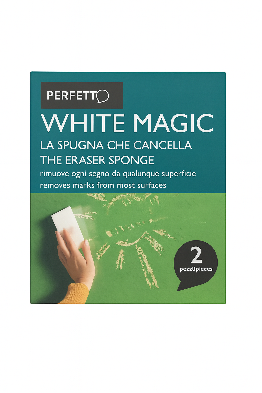 Buretele Perfetto White Magic este soluția ideală pentru îndepărtarea rapidă a petelor și urmelor de pe majoritatea suprafețelor, fără utilizarea de detergenți agresivi. Perfect pentru curățarea urmelor de creion, pix, marker, amprente sau murdărie persistentă.