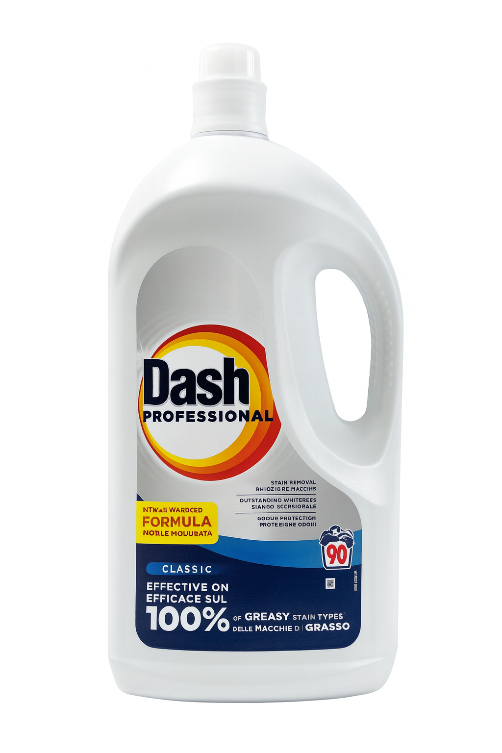 Detergentul lichid Dash Professional Classic este alegerea ideală pentru o curățare impecabilă a hainelor. Formula sa nouă și îmbunătățită îndepărtează eficient petele de grăsime și murdăria dificilă, oferind în același timp o albire excepțională și o protecție de durată împotriva mirosurilor neplăcute.