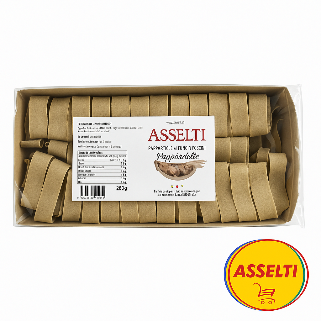Descoperă gustul autentic al Italiei cu Pappardelle AsseIti cu ciuperci porcini, paste artizanale cu ou, produse în Italia. Combinația delicată dintre grișul de grâu dur și aroma intensă a ciupercilor porcini oferă un preparat savuros, cu o textură fină și o culoare naturală.