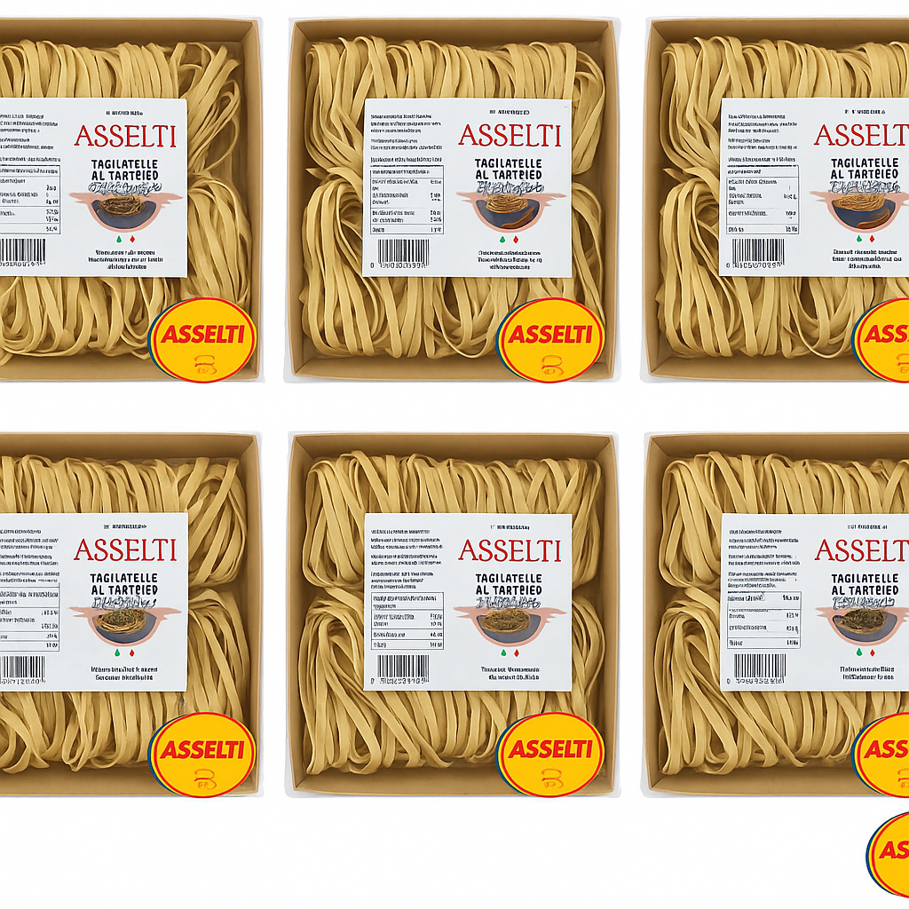 Răsfață-ți simțurile cu gustul rafinat al Italiei – Tagliatelle al Tartufo AsseIti, paste artizanale cu trufe, produse în Italia. Acest set conține 6 pachete a câte 250g, perfecte pentru iubitorii de preparate gourmet.