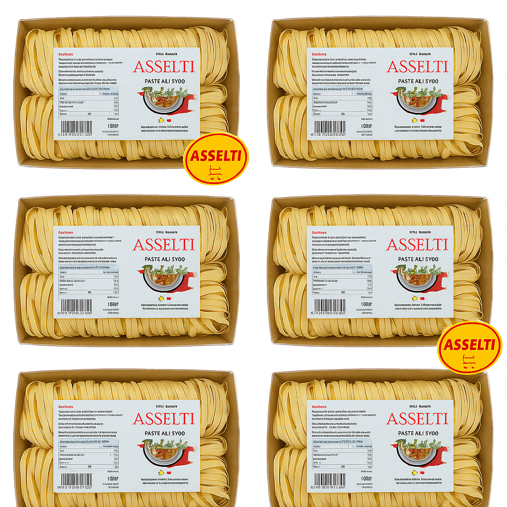 Tagliatelle Asselti sunt uscate lent, pentru a păstra aroma naturală a ingredientelor și pentru a garanta o fierbere uniformă. Se gătesc în doar 5–6 minute și sunt ideale pentru preparate mediteraneene autentice.