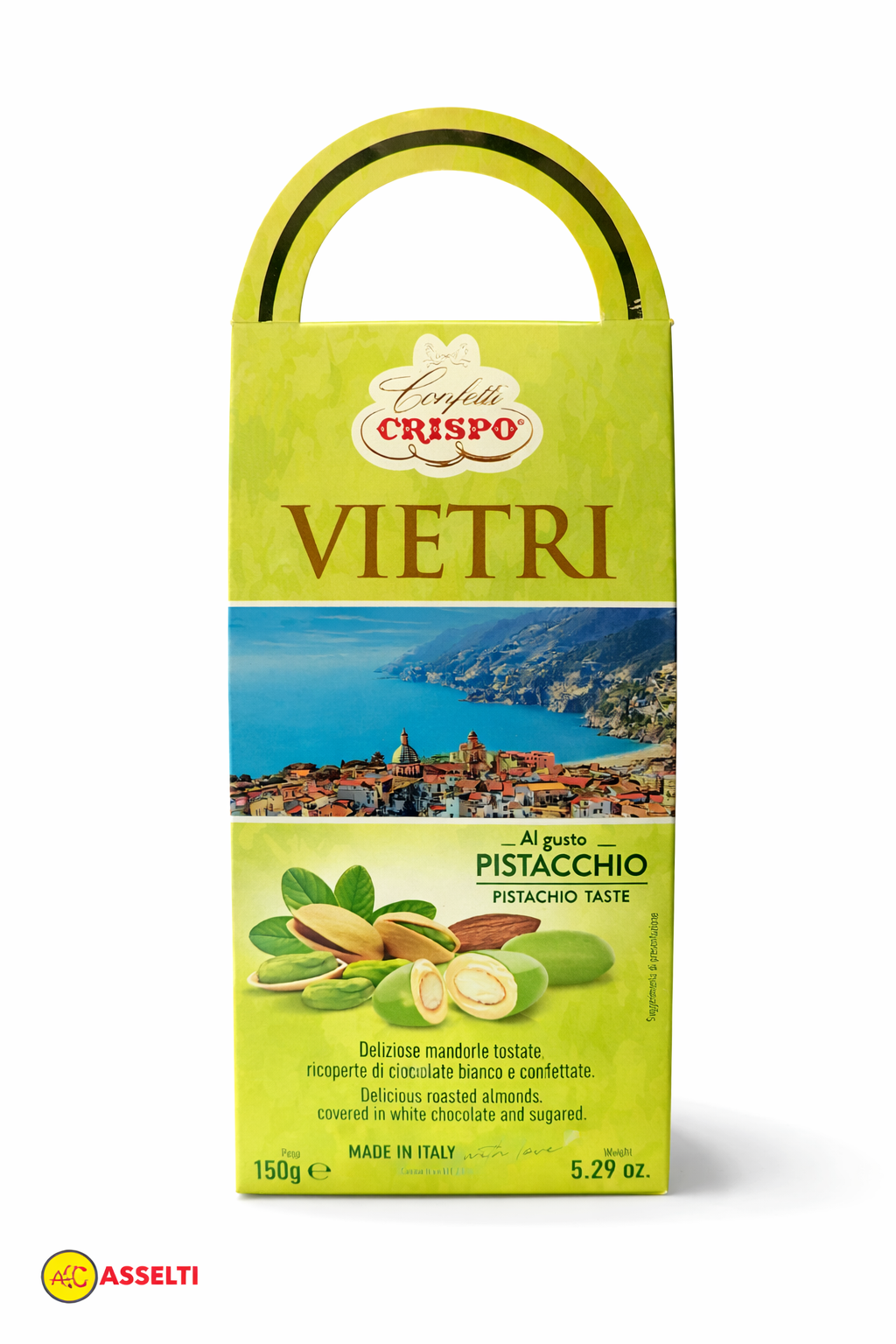 Confetti Crispo Vietri cu gust de fistic reprezintă o specialitate rafinată a tradiției italiene, care îmbină calitatea, eleganța și gustul autentic.