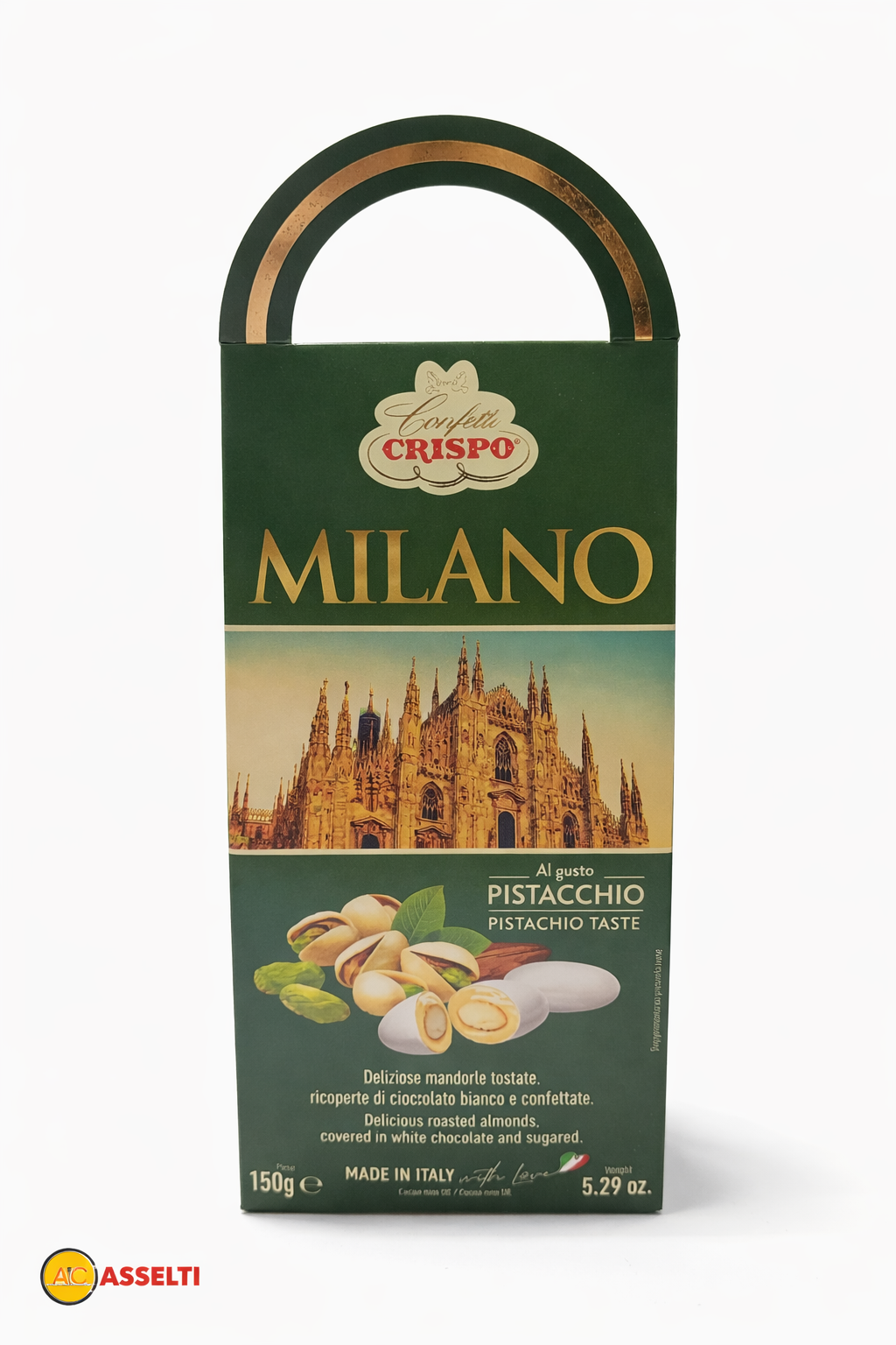 Confetti Crispo Milano cu Fistic – Migdale prăjite în ciocolată albă, 150 g, Made in Italy