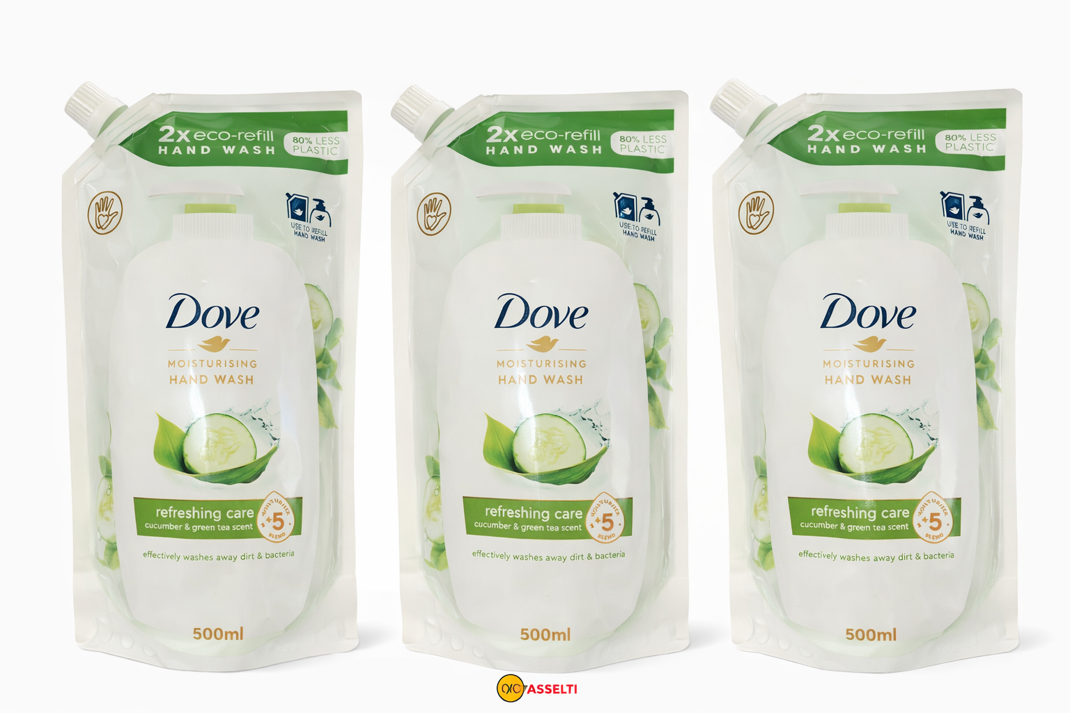 Set 3 x Dove Săpun Lichid Mâini Eco-Refill Refreshing Care – Castravete & Ceai Verde, 500 ml, Hidratare și Îngrijire