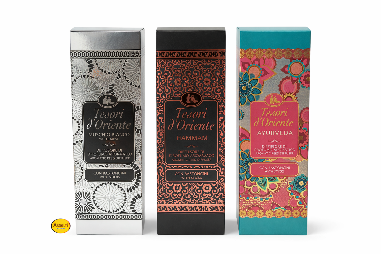 Set elegant format din 3 difuzoare de parfum ambient Tesori d’Oriente®, fiecare cu aromă distinctă, inspirată din ritualuri orientale autentice. Ideal pentru a crea o atmosferă plăcută, relaxantă și rafinată în orice încăpere.