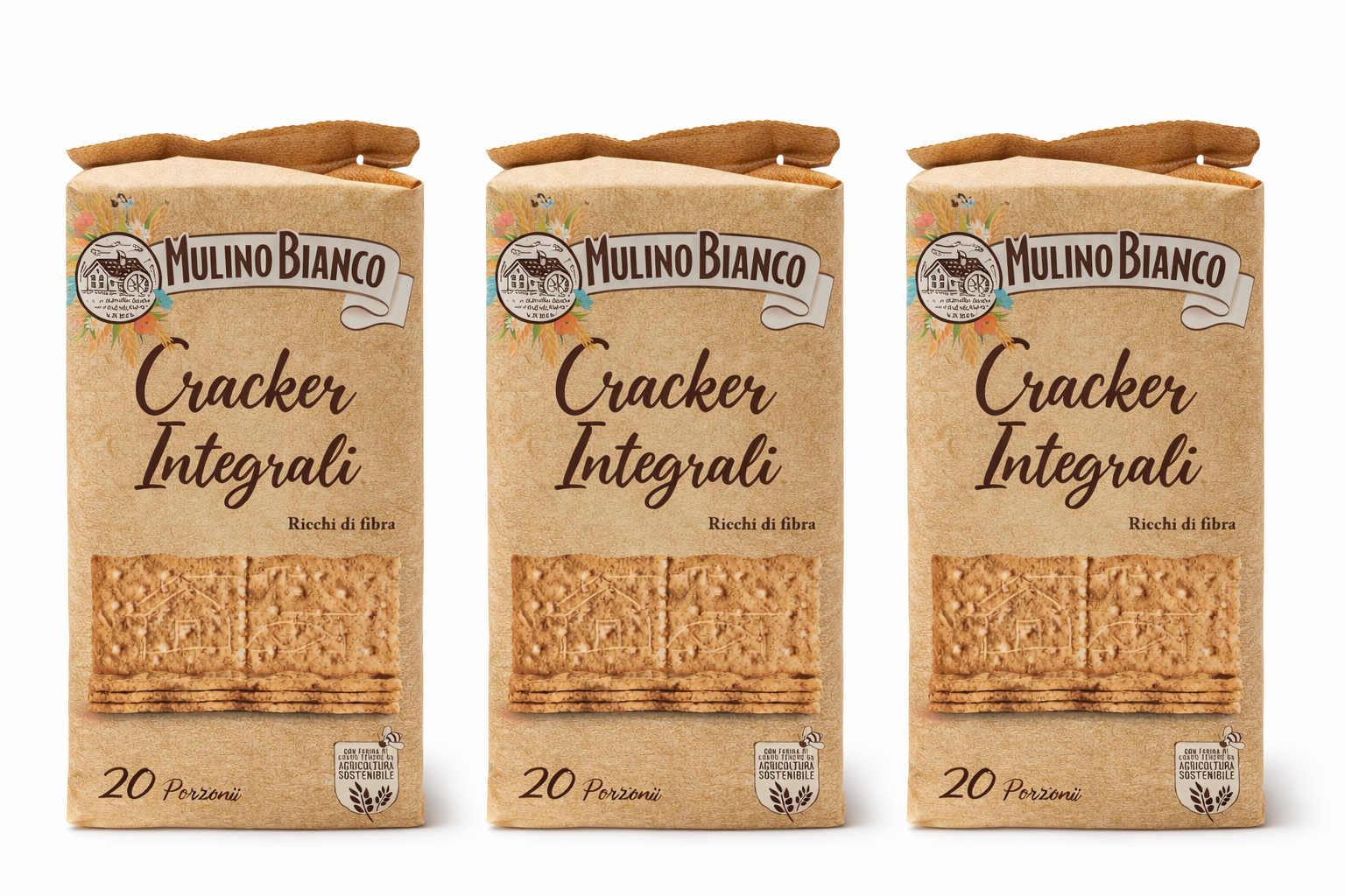Crackerii integrali sunt realizați din făină integrală, au un gust echilibrat și o textură crocantă, fiind bogați în fibre. Produs italian de calitate, obținut cu ingrediente atent selecționate și din agricultură sustenabilă.