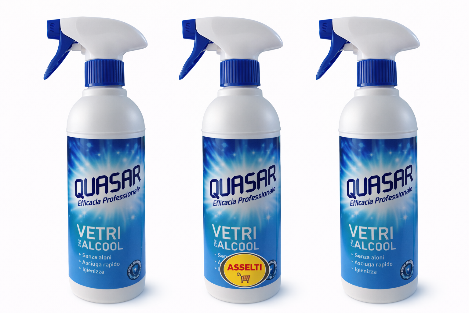 Set 3 x QUASAR Vetri cu Alcool 580 ml – Spray curățare geamuri, fără urme, uscare rapidă