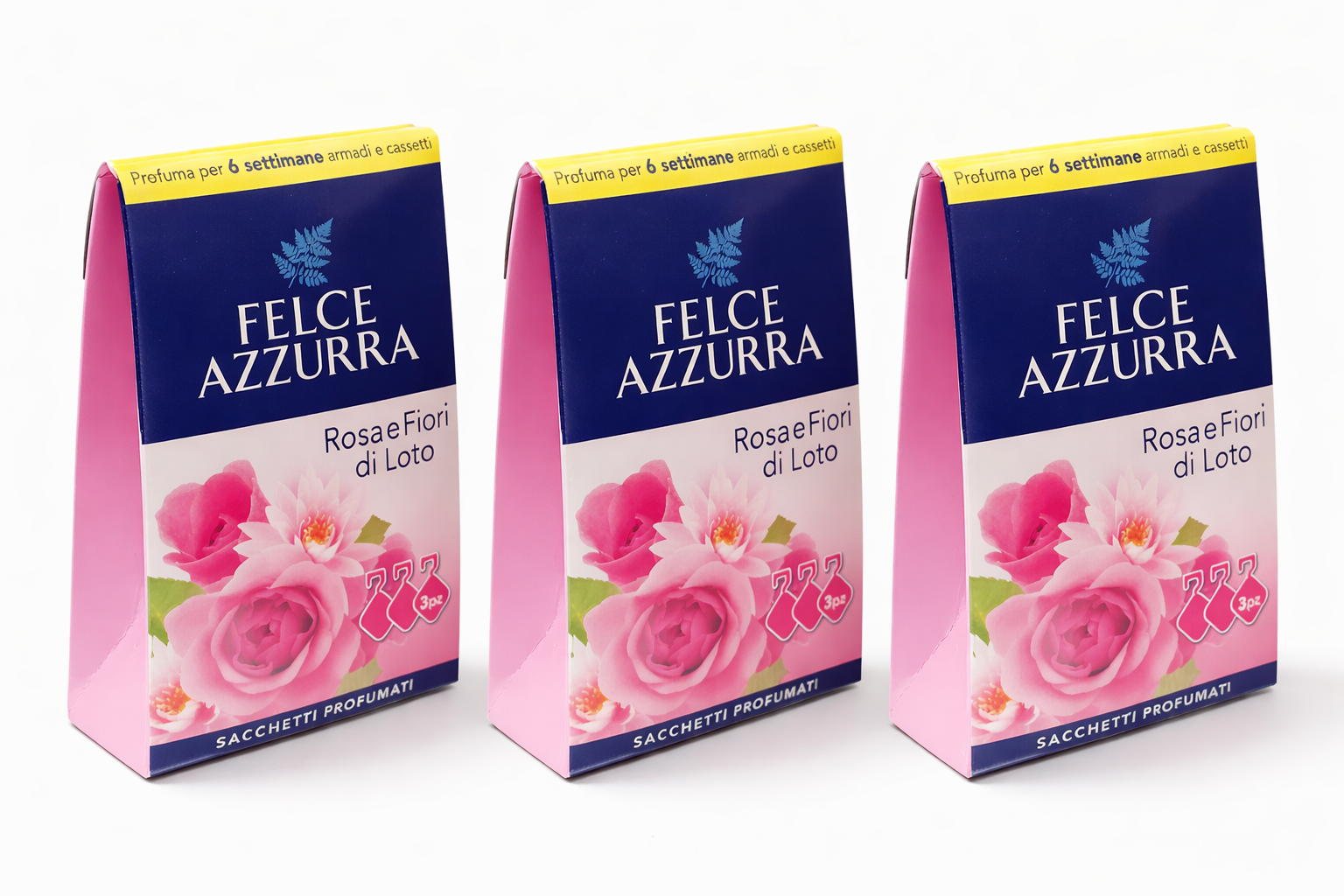 Set 3 x Odorizant dulap Felce Azzurra Rosa și Flori de Lotus – 3 plicuri parfumate, prospețime până la 6 săptămâni