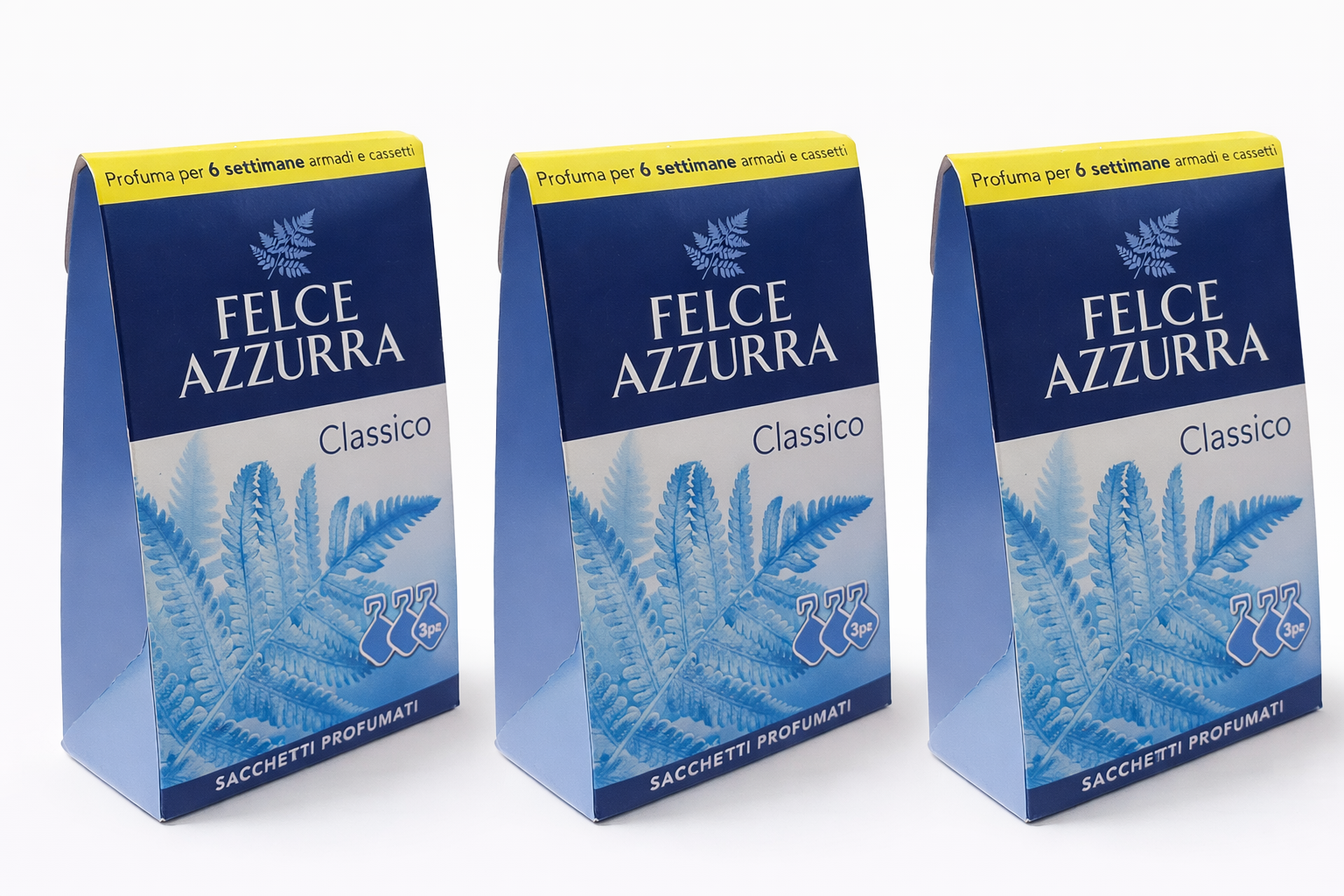Set 3 x Odorizant dulap Felce Azzurra Classico – 3 plicuri parfumate, prospețime de durată