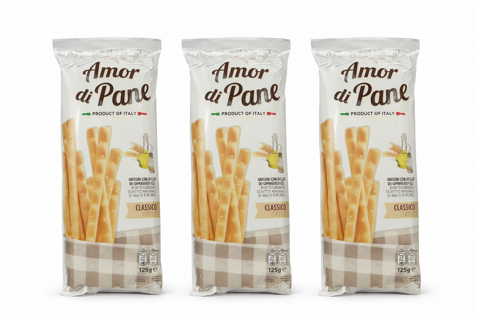 Set 3 x Amor di Pane Grissini Classico, 125 g/buc, grisine italiene cu ulei de măsline extravirgin