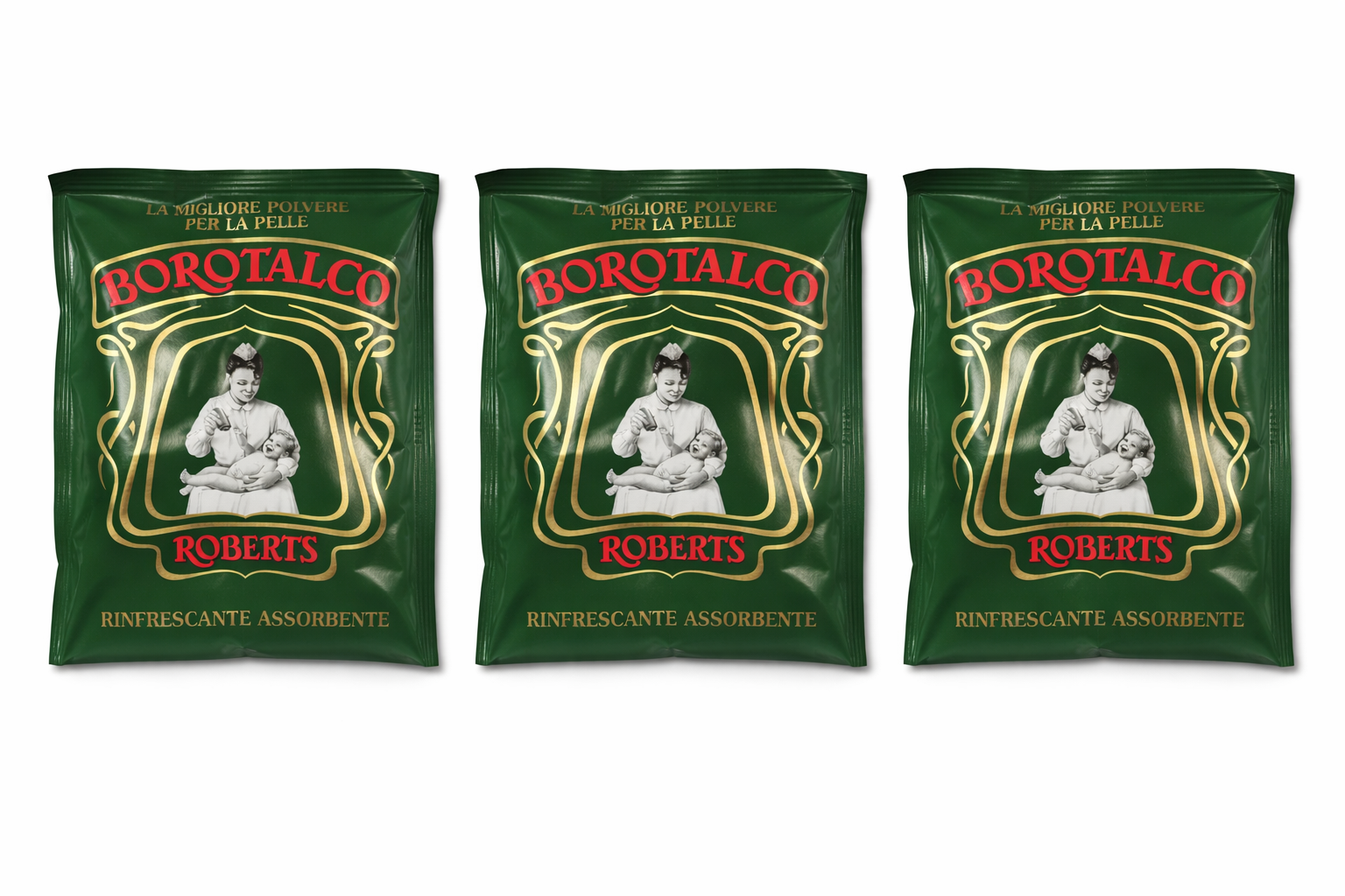 Setul conține 3 rezerve Borotalco Roberts, fiecare de 100 g, destinate reîncărcării recipientelor reutilizabile. Pudra clasică Borotalco este recunoscută pentru efectul său absorbant și răcoritor, ajutând la menținerea pielii uscate și confortabile pe tot parcursul zilei.