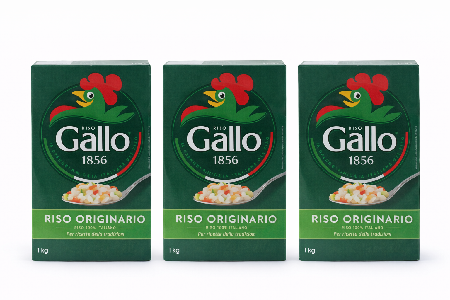 Setul conține 3 cutii de Riso Gallo Originario, fiecare cu greutatea de 1 kg, un orez italian de calitate superioară, cu boabe rotunde, ideal pentru preparate tradiționale.