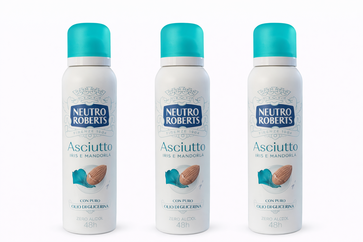 Set 3 x Deodorant spray Neutro Roberts Asciutto Iris & Migdale 150 ml – 48h, fără alcool