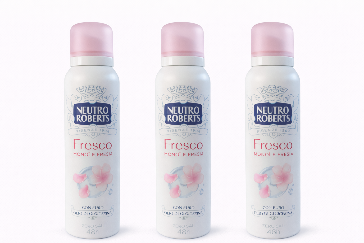 Set Neutro Roberts Fresco Monoi și Frezie – 3 x 150 ml, deodorant spray fără alcool, protecție 48h