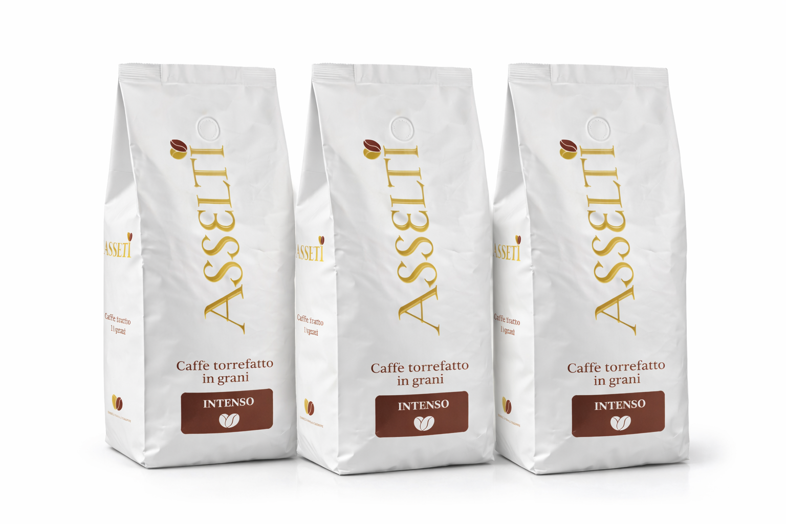 Set ASSELTI® Intenso – 3 x Cafea boabe 1 kg, cafea italiană prăjită, gust intens și corpolent