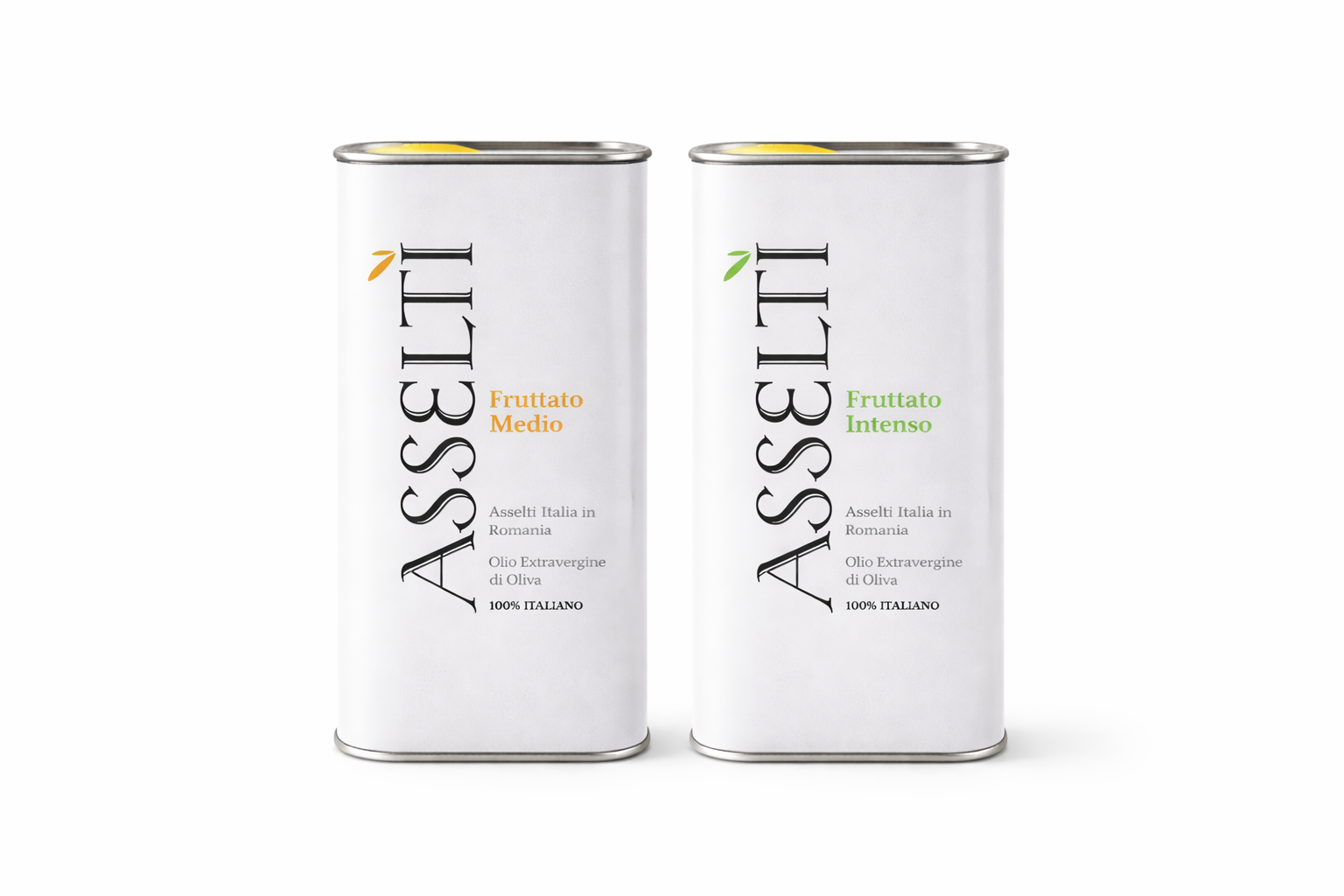 Set ASSELTI® Origine Italia – 2 x Ulei de măsline extravirgin 1L, Fruttat Mediu + Intens, 100% italian