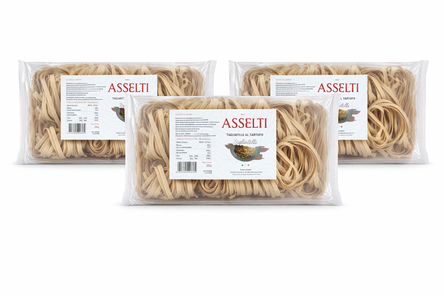 Set ASSELTI® Origine Italia – 3 x Tagliatelle al Tartufo 250g, paste cu ou aromă de trufe, gust rafinat italian