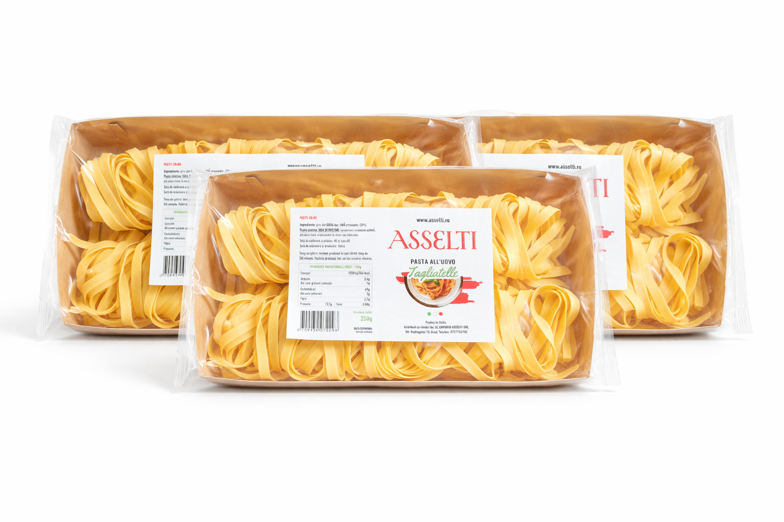 Set format din 3 pachete de tagliatelle all’uovo Asselti, produse în Italia după rețete tradiționale, din ingrediente atent selecționate.
