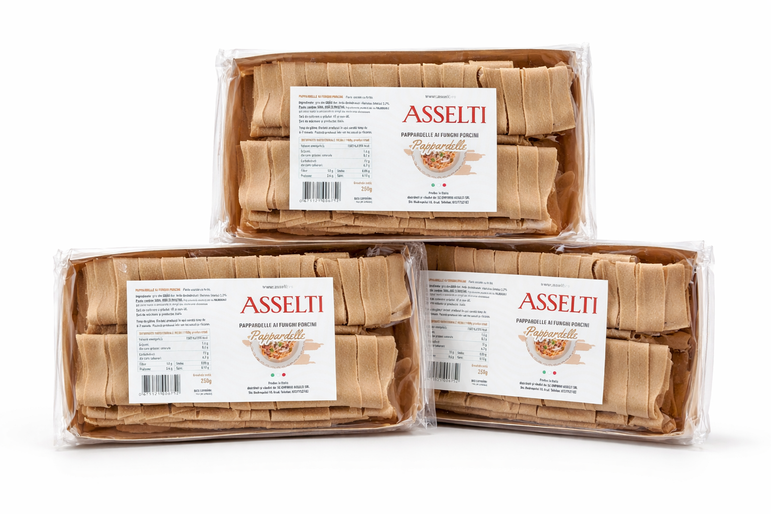 Set ASSELTI® Origine Italia – 3 x Pappardelle cu ciuperci porcini 250g, paste artizanale din ou