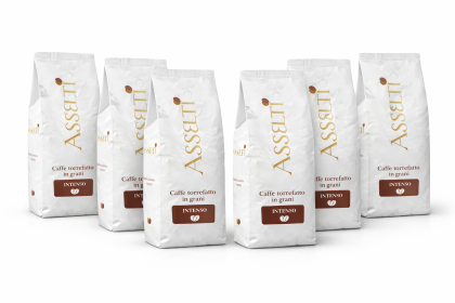 Set ASSELTI® Intenso – 6 x Cafea boabe 1 kg, cafea italiană prăjită, gust intens și corpolent
