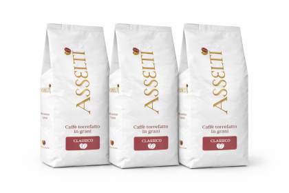 Set 3 × 1 kg Cafea boabe – ASSELTI Classico, amestec Arabica & Robusta, gust echilibrat