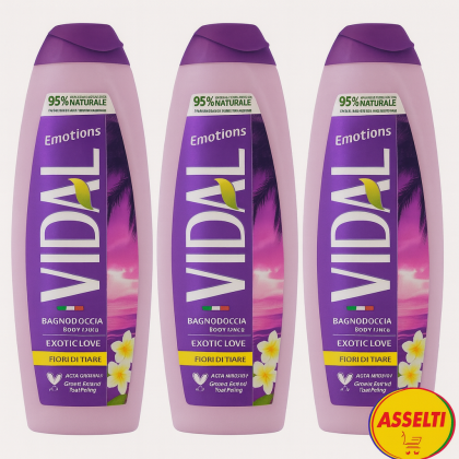 Set ASSELTI® Origine Italia – 3 x Vidal Exotic Love Fiori di Tiaré 500 ml, Gel de duș cu parfum exotic și floral