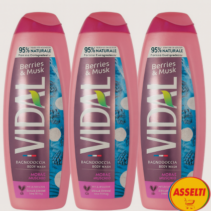 Set ASSELTI® Origine Italia – 3 x Vidal Berries & Musk 500 ml, gel de duș parfumat cu fructe de pădure și mosc
